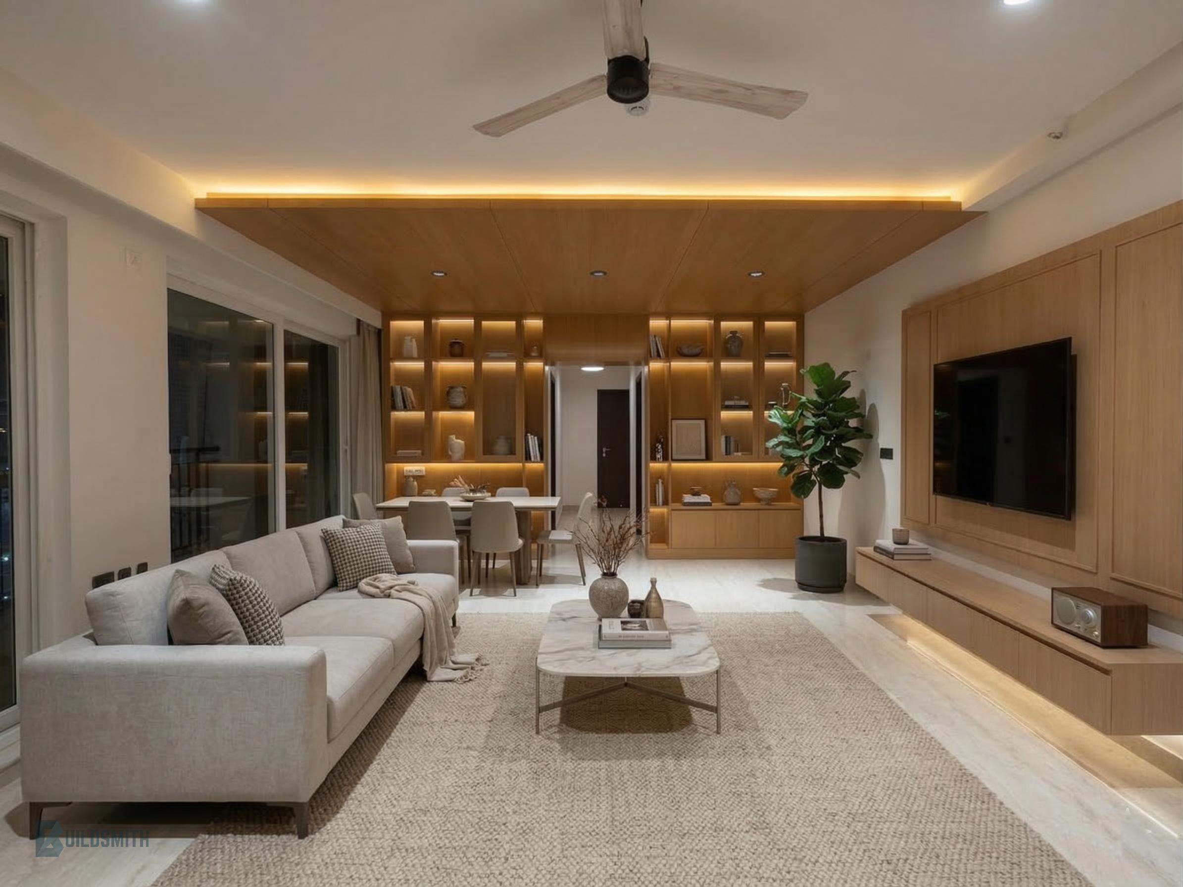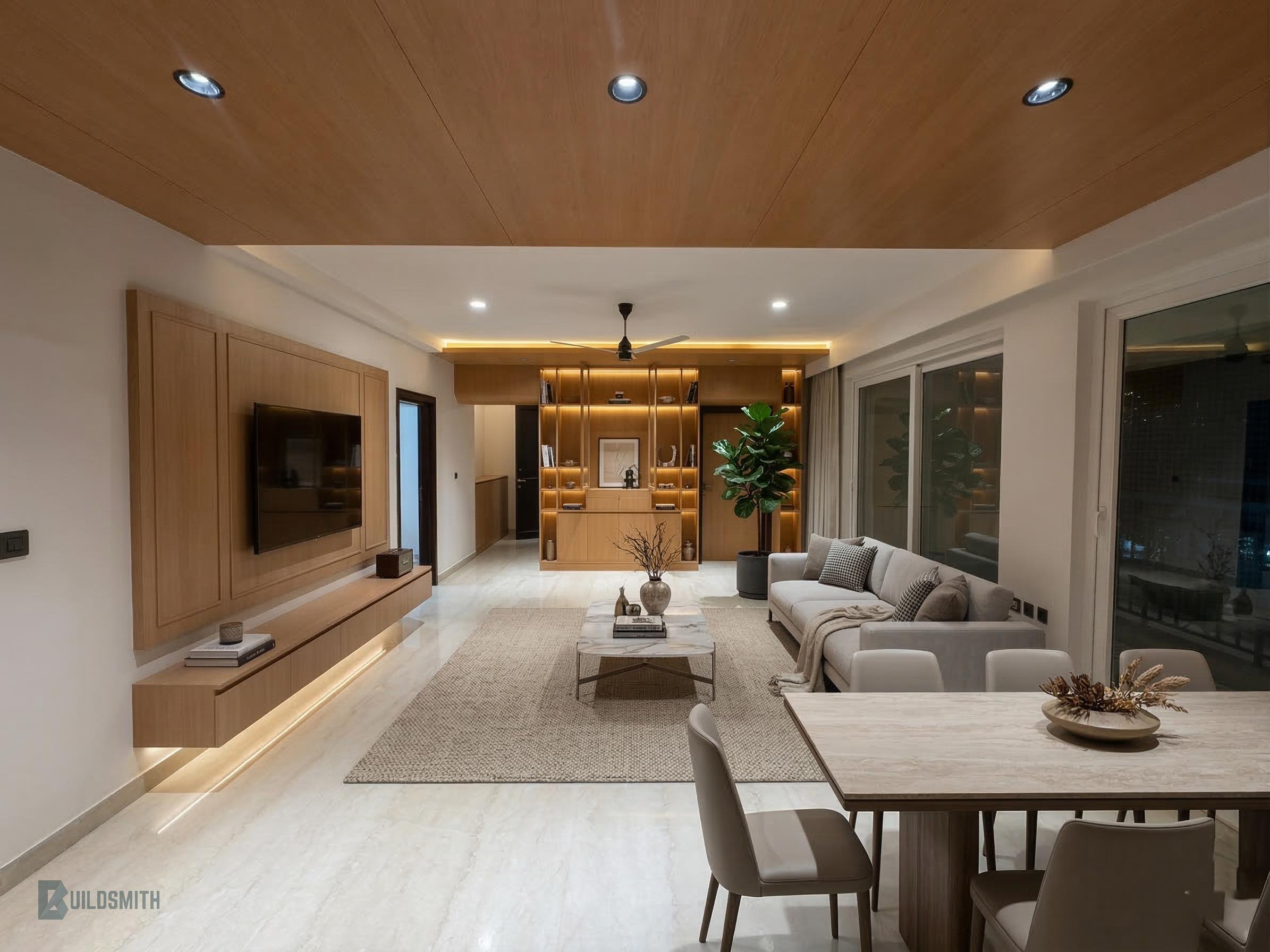 Buildsmith handled the project execution, working to ensure that the design was translated accurately and elegantly on site. From joinery execution to lighting integration and final finishing, the focus remained on delivering a clean, cohesive, and high-quality result.